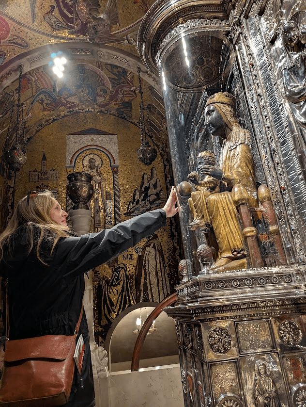 I cringed against the glare of light off of some of the haunting statues we passed on our climb up to La Moreneta. But when I ran my palm against the smooth wood of the orb she held outstretched, like tens of thousands of pilgrims before me, her child balanced peacefully in her lap, I cried. I’m not sure why. Just like I wince in my headscarf when I cannot pass into the main prayer room of the grand mosque because I am a woman, but get goosebumps when everyone kneels together, shoulder to shoulder in perfect unity. Just like when I roll my eyes at the smoke and lights behind the praise team dressed as though for a photoshoot in a wheat field, but weep through every single verse of “Waymaker”.