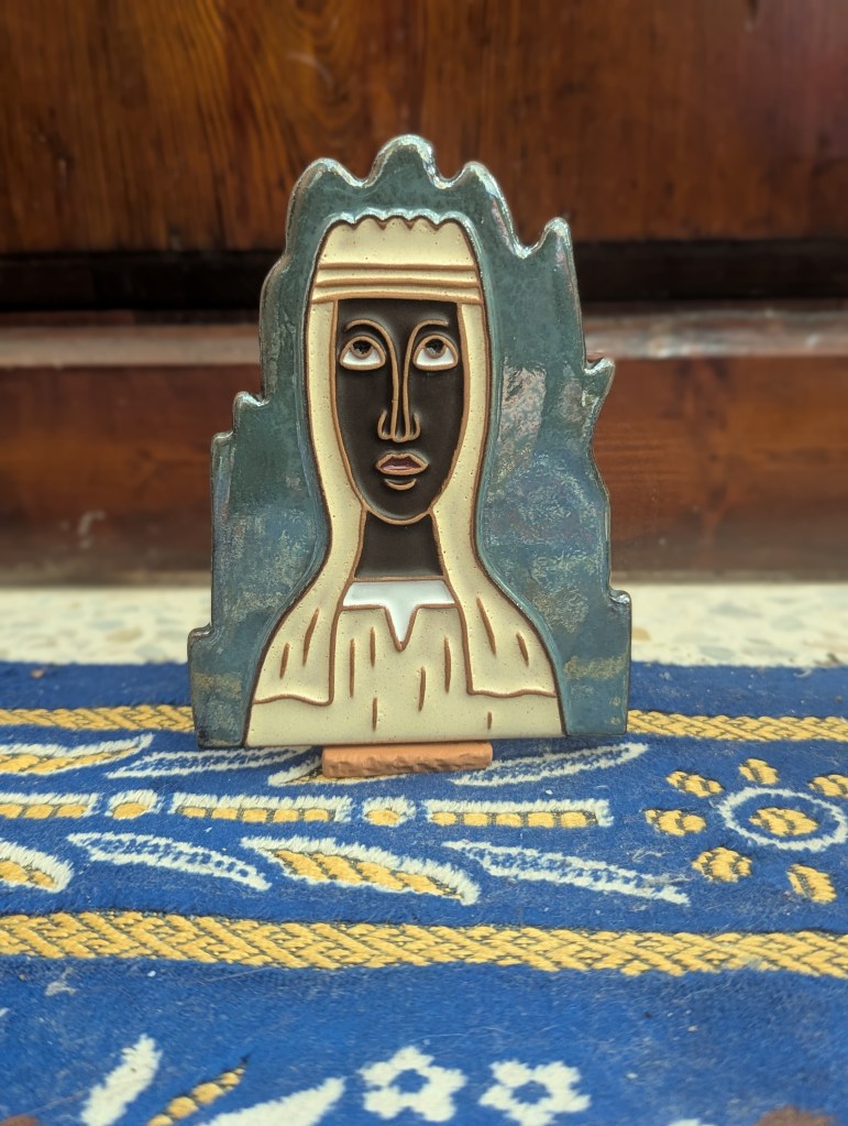 I didn’t leave anything physical behind with Mary, though I chuckled thinking how my Marian theology probably aligns more closely with the Moor’s than with Saint Ignatius. But I still bought a terracotta piece painted with her dark face. It sits now not far from my prayer mat. The one I bought outside the Ghaddafi mosque in Uganda many years ago. The mat is dusty with sage ash from the incense I burn when I pray. Each one pulls me in in some small way. Pushes me back out. Moves me along in this ebb and flow of prayer we are called to live without ceasing.