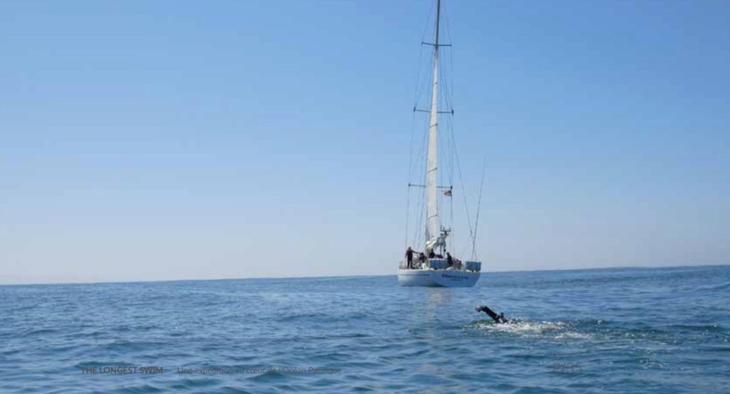 Ben Lecomte is a part of a team. And without them he would be dead in the water.